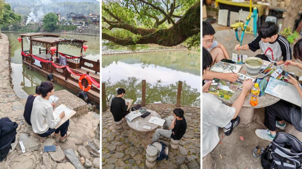 (学生在福建漳州云水谣进行绘画写生)