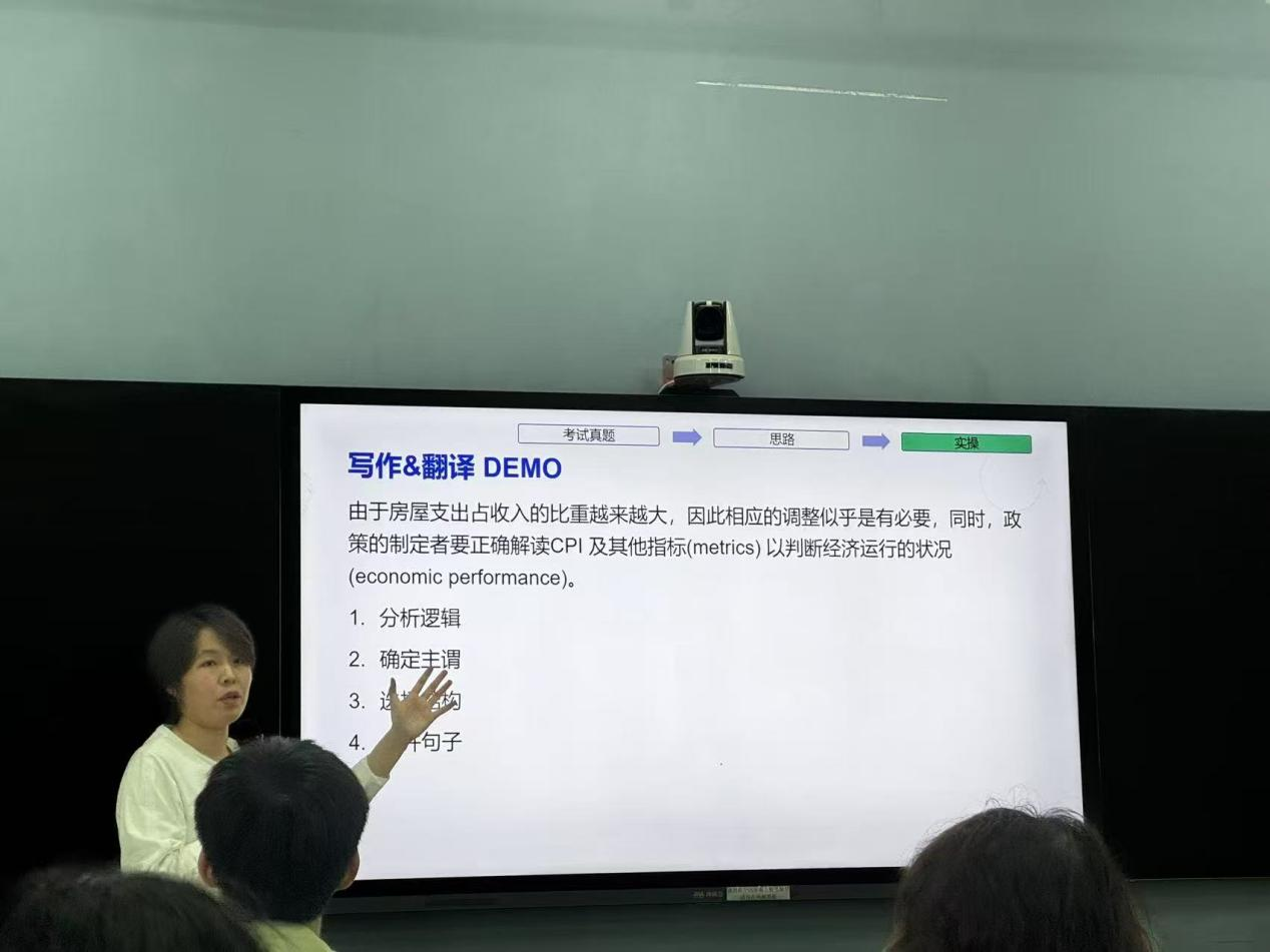孙老师还提供了精彩的写作与翻译示范,旨在培养学生在语言学习中的逻辑分析思维能力,并引导学生在日常学习中逐步构建科学的考试思维模式。这种创新性的教学方法,不仅为大学英语课堂教学注入了新的活力,更有助于学生顺利通过大学英语四六级考试。通过此次培训,教师能够更有效地将考试思维训练融入日常教学中,提升学生的记忆能力和思维方式,帮助学生提高学习效率,增强教学效果。