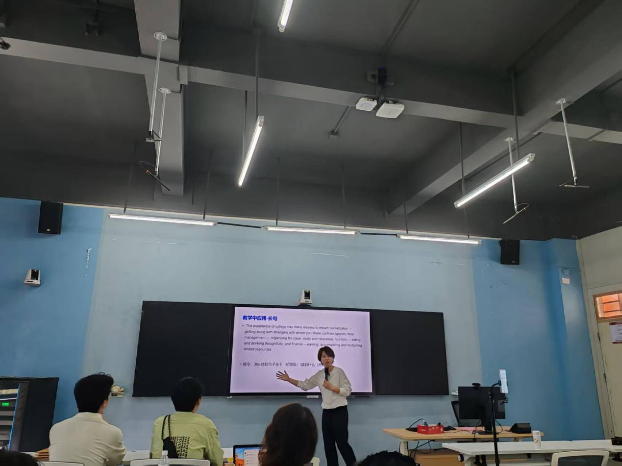 在培训过程中,孙老师巧妙地将四六级真题阅读与大学英语教材课文相融合,并对长难句的解读技巧进行了深入剖析。通过段落阅读法的示范,她引导教师们在授课过程中逐步帮助学生克服阅读障碍,提升快速捕捉阅读信息的能力,同时有效拓展词汇量并提高阅读速度。