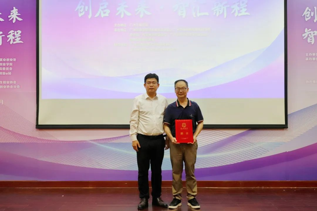 余家军副校长为广州大学创新创业学院院长王满四教授颁发聘书,王满四教授受聘为新伟德国际1946创新创业导师。