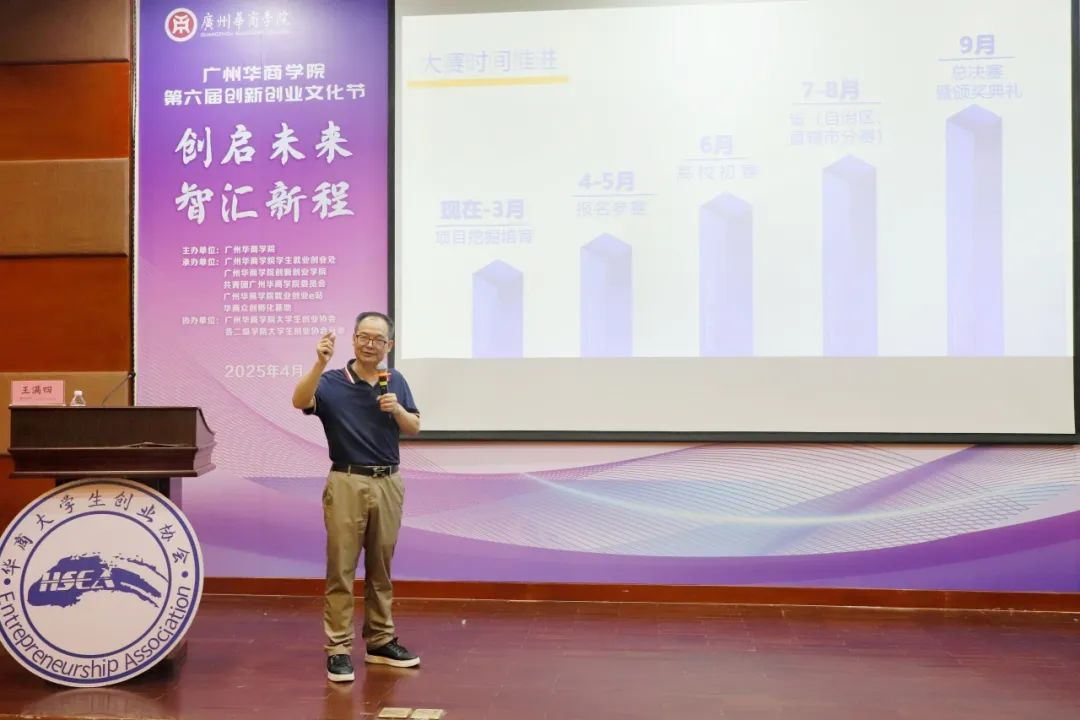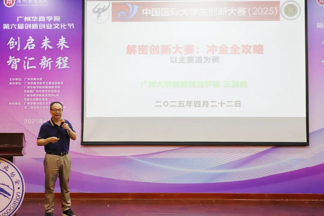 在开幕式上,广州大学创新创业学院院长王满四教授作“解密创新大赛:冲金全攻略”主题演讲。