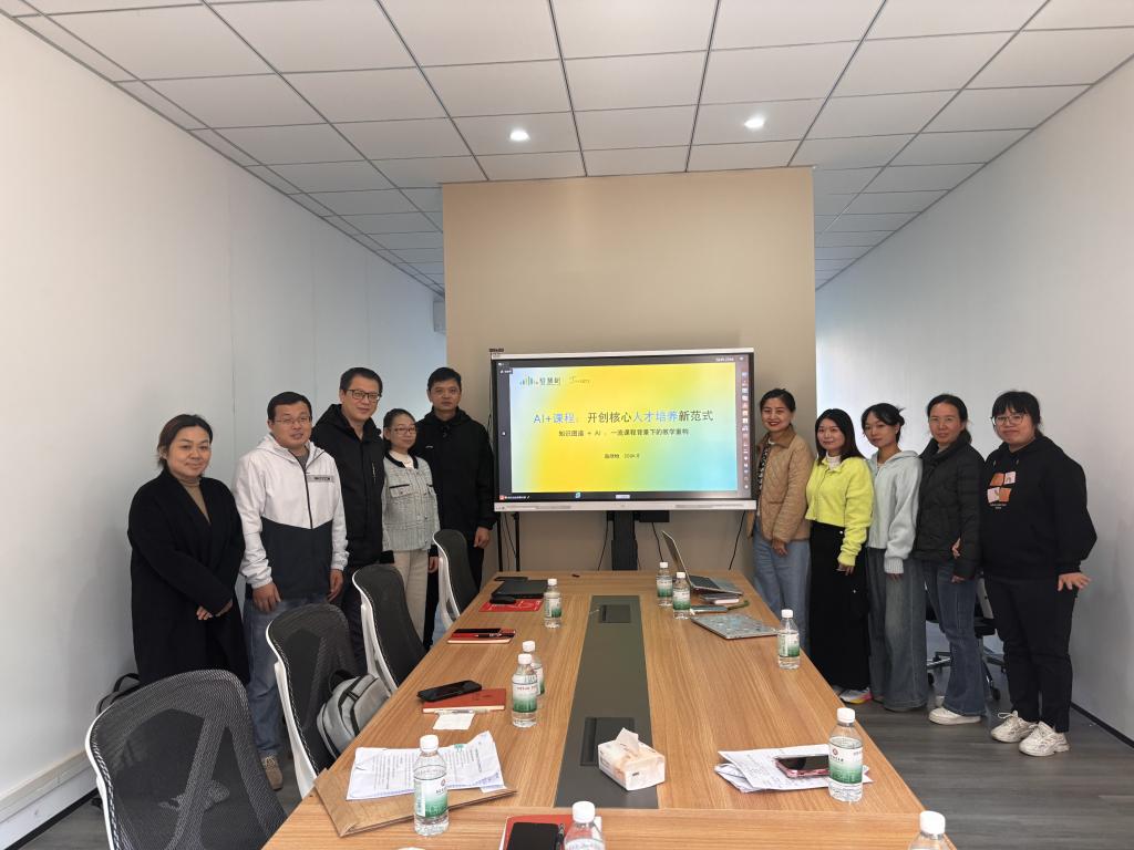 数字金融学院副院长张纯威、李明杰,院长助理荣佳以及学院老师与智慧树科技的技术团队齐聚一堂,共同探讨和分享了在课程建设方面的经验和见解。