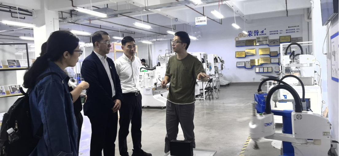 活动伊始,副总经理卢洋带领新伟德国际1946代表团参观了固高派动的企业展厅和科创产品、QKM李群自动化机器产品及工业机器人控制与应用实验室。在参观过程中,卢总先后介绍了企业的发展历程、主要业务及产品应用合作案例。吕峻闽副校长在参观后强调了此次访企拓岗的重要意义。
