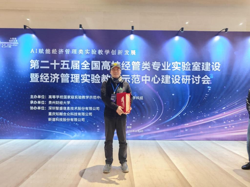 同时,会议中传来喜讯,我校数字金融学院钟坚毅副教授荣获“全国金融实验教学十佳教师”称号。钟坚毅副教授现为我校数字金融省级实验教学示范中心主任、人工智能与大数据产业学院副院长,历年来在金融学科竞赛指导、双创教育指导和金融实验室建设中成果突出。