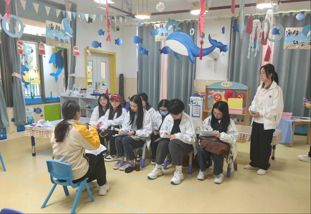 在幼儿园的积极配合下,两个班级的学生分为五个小组,分别进入小、中、大班,进行了饮食营养健康教育的小组试讲活动。同学们的教案和试讲得到了幼儿园教师的专业点评。这一互动环节有效地提升了教学效果,为同学们提供了宝贵的实践经验。