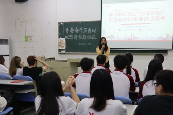 青年强,则国家强。当代中国青年生逢其时,施展才干的舞台无比广阔,实现梦想的前进无比光明。习近平总书记在考察中对青年一代委以重托、寄予厚望,为广大青年成长为全面推进中华民族伟大复兴赛道上的青春支柱,青春栋梁提供了更为明确的目标指引。2023年4月21日中午12:30,创意与设计学院团委于励志楼A204组织开展“学习贯彻习近平总书记视察广东重要讲话精神”主题学习会,团学全体成员,各班团支书和团员代表参加学习。由创意与设计学院团委书记蔡舒带领学习。