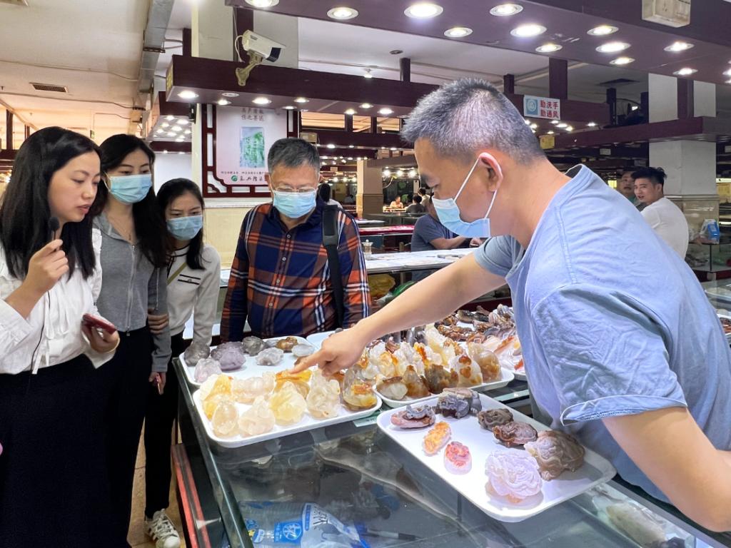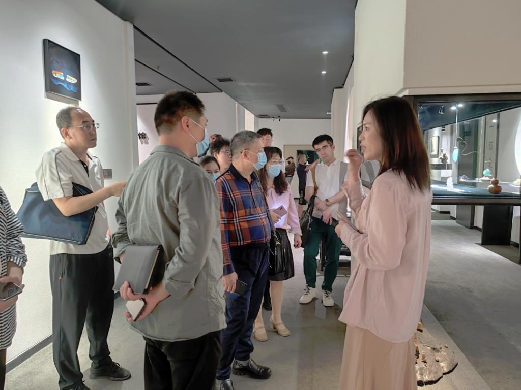 上午十点,李广明院长一行走访四会市万德隆珠宝公司。万兴隆翡翠城党委副书记吴丽丽简要介绍了四会市珠宝玉器行业、万兴隆翡翠城的发展历程和万兴隆翡翠城首创的“产业带+”的模式在电商直播产业对销售升级转型后的全貌、项目的全新定位和未来的运营方向。