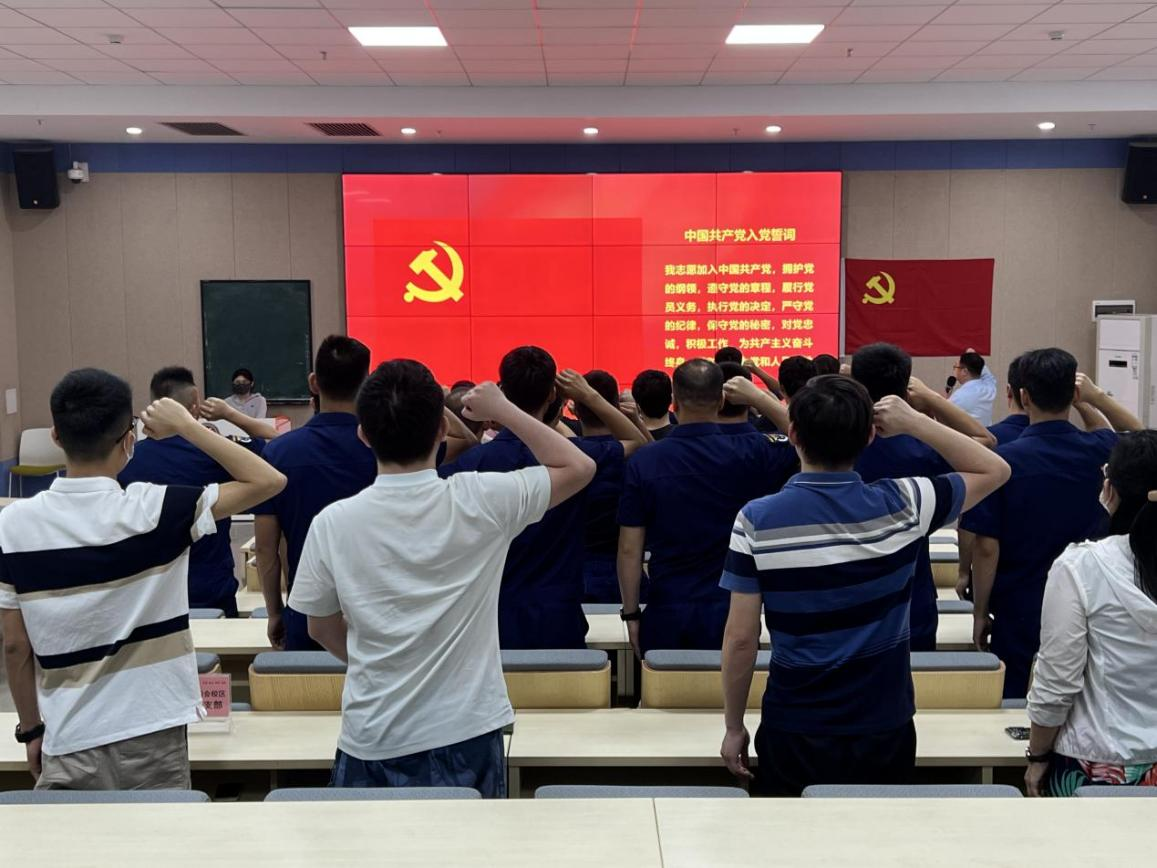 签约完毕后,在四会校区机关党支部副书记古文胜同志的领誓下,大家举起右拳,面向党旗庄严宣誓,重温入党誓词,进一步强化党员意识,增强党性观念,筑牢政治忠诚,永葆共产党员的初心使命。