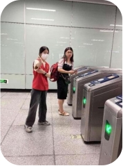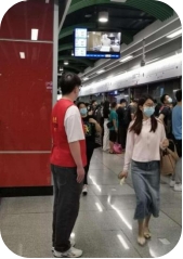 到达地铁站后,同学们进行了有序分工,并迅速投身到工作岗位中。积极开展文明引导、爱心帮扶、信息咨询等志愿服务,用实际行动为乘客营造一个安全畅通、文明有序、和谐礼让的乘车环境,用热心服务温暖了乘客的出行路、回家路。在服务过程中,志愿者们面带微笑、用心用情服务,在站台、换乘指引处为乘客提供指引,耐心回答乘客关于购票、换乘、路线等问题,在客流高峰时协助疏导客流,以专业的姿态和饱满的服务热情服务乘客,展现了华商青年学生志愿者的风采。