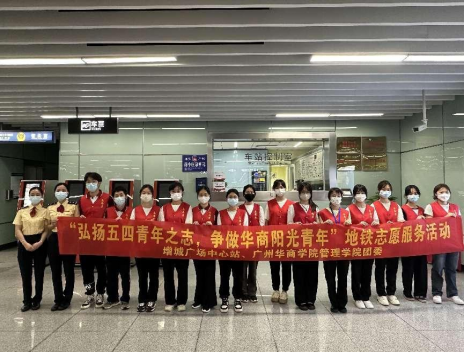 主题教育|管理学院举办“弘扬五四青年之志,争做华商阳光青年”地铁志愿活动