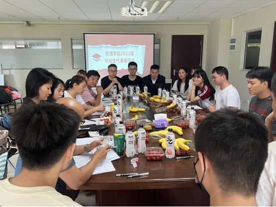 2023年6月20日上午10:30,管理学院2023届毕业生代表座谈会在行政楼311顺利举行。学院各系主任副主任,教师代表,辅导员,毕业生代表参加本次座谈会。
