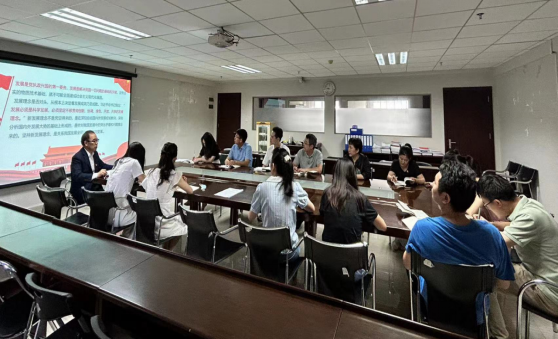郭银华执行校长从九个方面出发,为支部同志深入浅出地解读了习近平新时代中国特色社会主义思想中关于经济建设的重要内容。包括:(1)完整、准确、全面贯彻新发展理念;(2)坚持以推动高质量发展为主题;(3)加快构建新发展格局;(4)推进高水平科技自立自强;(5)使市场在资源配置中起决定性作用,更好发挥政府作用;(6)深化供给侧结构性改革;(7)坚持“两个毫不动摇”;(8)实施国家重大发展战略;(9)建设现代化产业体系。