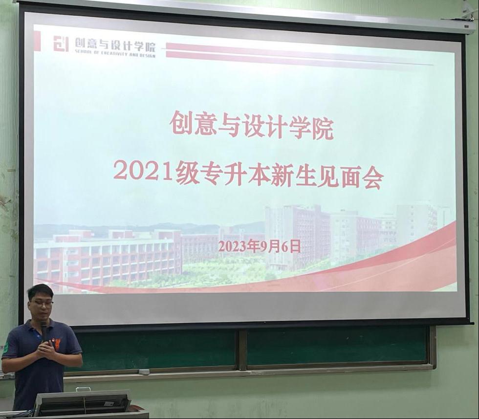 为了让专升本新生加强专业认识,更好地融入校园,明确未来方向,9月6日晚,创意与设计学院在励志楼C208召开2021级专升本新生见面会。创意与设计学院副院长杨磊、副院长陈晓坚、商品设计系主任张宪法、视觉传达系主任郭湘黔、环境设计系副主任蒋明、数字媒体艺术设计系主任李德顺、数字媒体艺术设计系副主任施锋、学工办主任钟纯、辅导员(环境、数媒)李君摘、辅导员(视传、产品)蔡舒、各系教师代表及全体专升本新生参与本次会议,会议由钟纯主任主持。