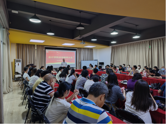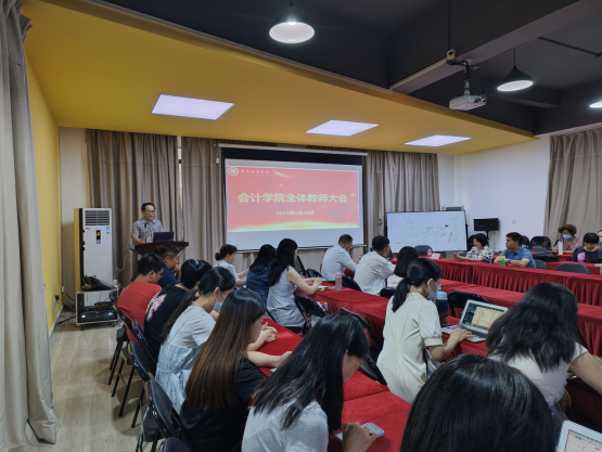会上,刘善球副院长表示一定不辜负学校领导的重托,发扬会计学院优良传统,勤勤恳恳、兢兢业业,团结与带领全院师生励精图治、创新发展,为会计学院再上新台阶努力拼搏!