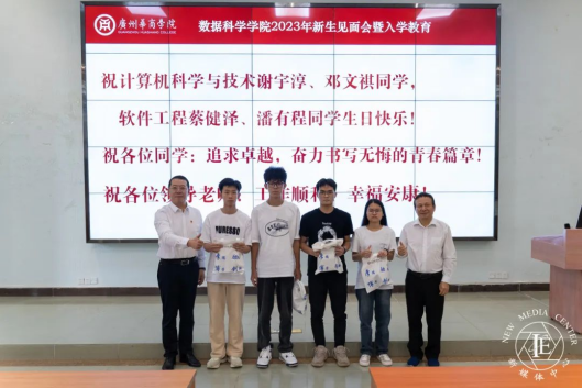 在见面会当天,为营造温馨的学院氛围,让新生感受到家的温暖,学院领导老师精心策划,为当天生日的4名新生准备了生日礼物,以这种方式欢迎新生加入数科院大家庭。