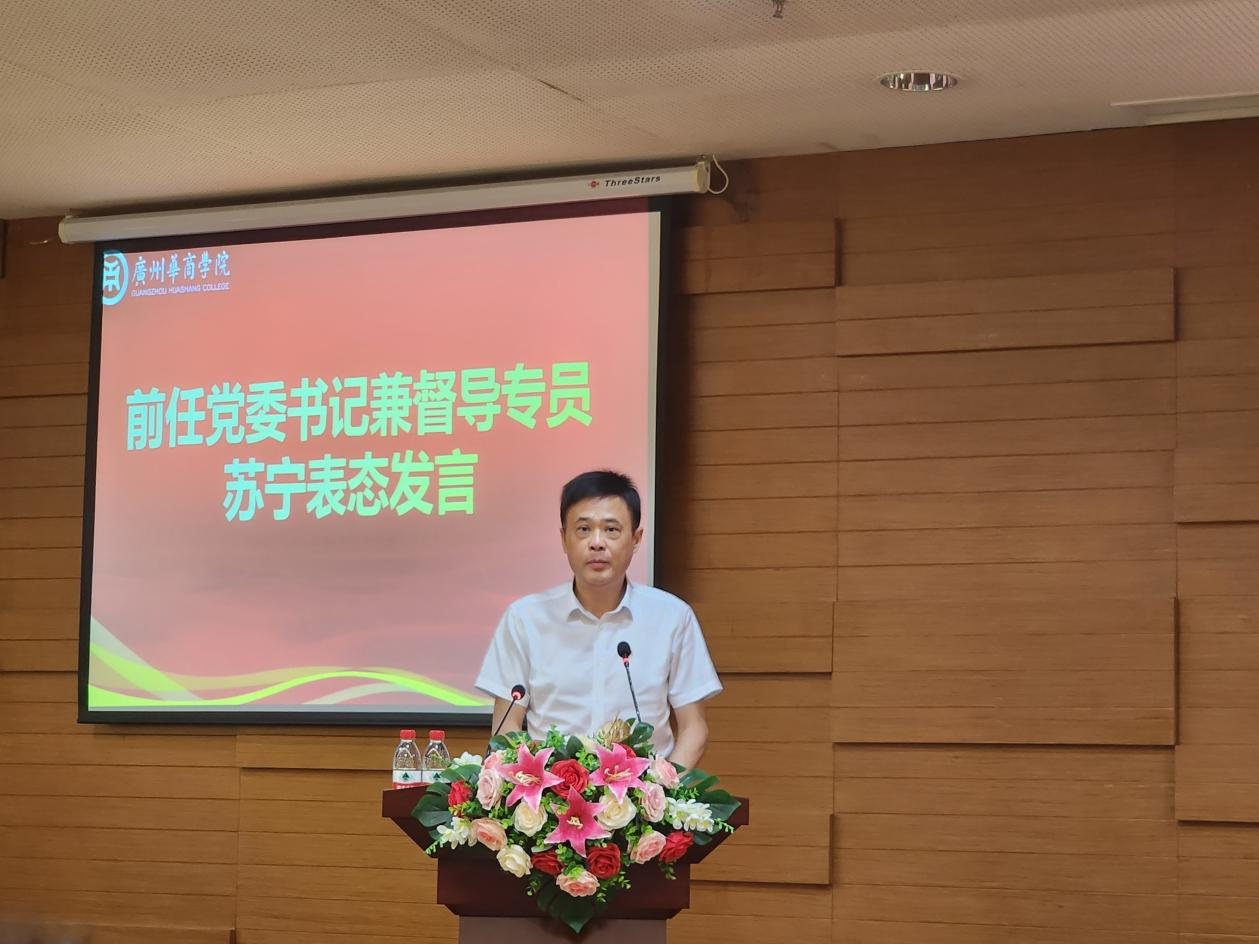 新伟德国际1946前任党委书记兼督导专员苏宁同志作表态发言。苏宁同志对在新伟德国际1946任职的十年进行了回顾,对省委领导、学校董事会、学校党政领导班子以及广大师生长期以来的信任与大力支持表示感谢。苏宁同志表示,十年间他与华商同呼吸、共命运,见证了新伟德国际1946的辉煌发展。当前学校迈向新的发展阶段,对党建工作提出了更高的要求,他对学校党委书记兼督导专员的调整表示完全支持并拥护省委教育工委的决定。他相信,新伟德国际1946在陈玉欢同志的带领下,在上级党组织的正确领导下,在董事会、学校党政领导班子、广大师生的大力支持下,华商的发展定能谱写新篇章,再创辉煌。他也会一如既往支持学校各项工作,尽自己所能继续为华商的发展做出贡献。