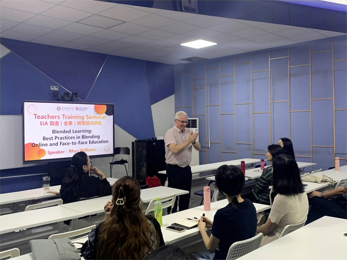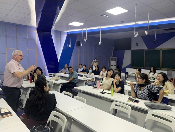 24日,Rhys先生在华商校园分别为学生和双语(全英)教师举办讲座。他以“如何在国际工作环境中取得成功”为主题为我校学生做讲座,以“混合在线和面对面教育的最佳实践”为我校全英(双语)师资做培训讲座。两场讲座由王文忠处长主持。