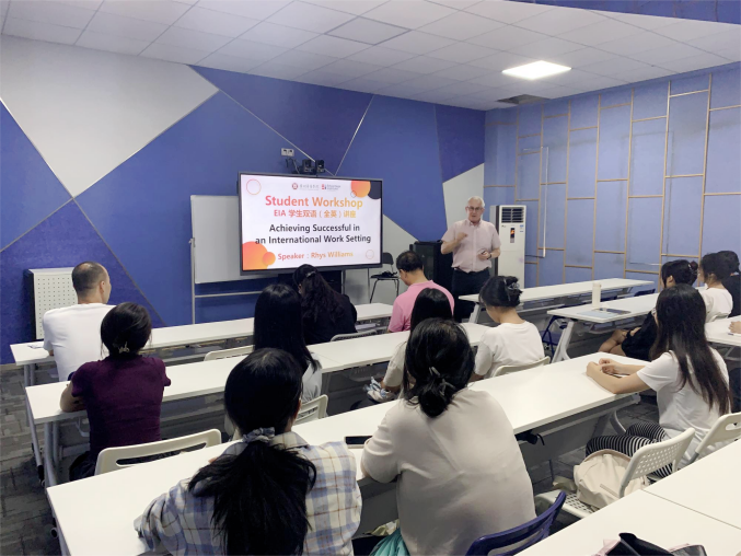 Rhys先生为华商-EIA双学位学生举办工作坊。同学们积极发言,提出相关问题向Rhys请教。Rhys先生详细解答了同学们的问题。