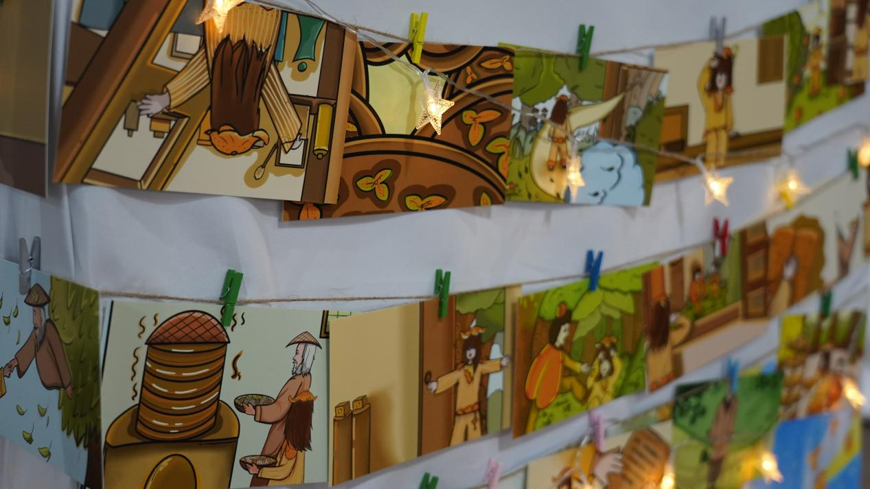 设计阐述:增城“舞火狗”是市级第二批非物质文化遗产之一,又名“麻车夜色”,是一项村民共同抗瘟疫的仪式,后演变为欢庆的民间艺术,作品采用了水墨国风画结合的形式绘制成绘本,将非遗文化内涵和技艺与水墨画的艺术表现结合,促进了文化宣传与精神感悟。将传统民间技艺活动与中国独特的水墨画表现形式相结合,不仅为传统水墨画与现代绘本设计的结合提供了探索与尝试,也为文化传承与创新注入了新的活力。