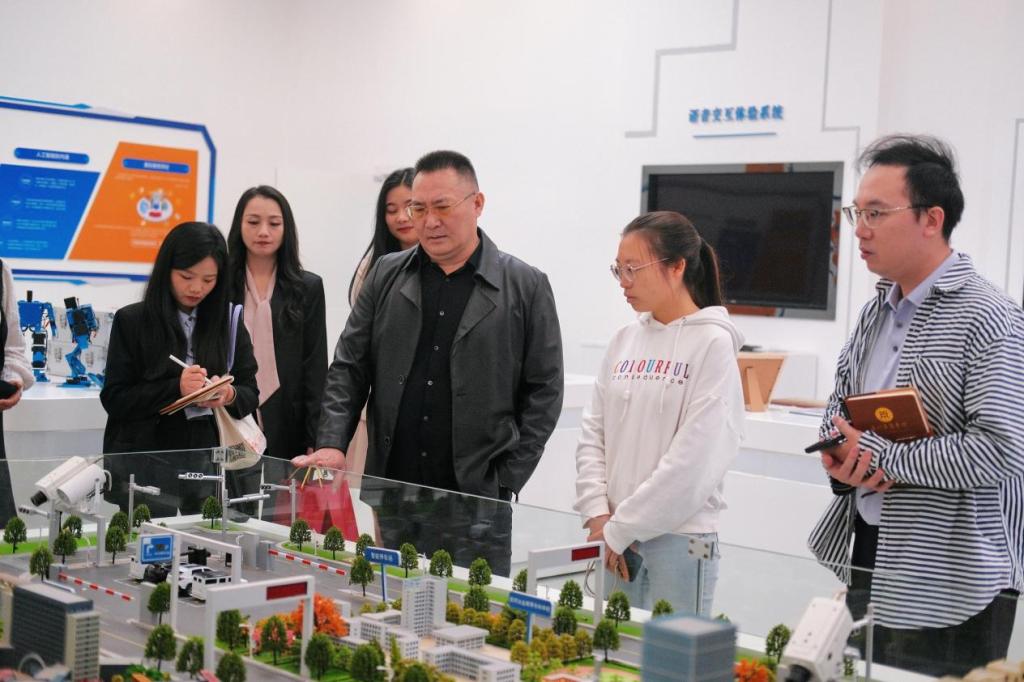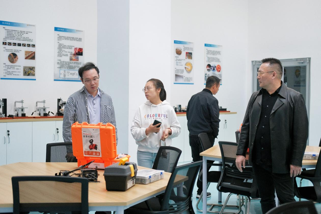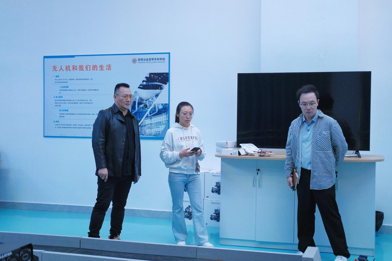 第二站,曾龙威处长一行参观了昆明冶金高等专科学校的智创实践教学基地,包括AI智慧学习实验室、智能机器人创新实验室、VR虚拟实验室等多个创新实验室,深入了解了该校在创新教育和实践教学方面的成果。在座谈交流中,双方就人才培养、就业创业服务等方面进行了深入探讨,重点讨论了创新创业体制机制、师资队伍建设、学校建设“一站式”就业创业服务等情况,为我校就业创业工作提供了新的思路和方法。