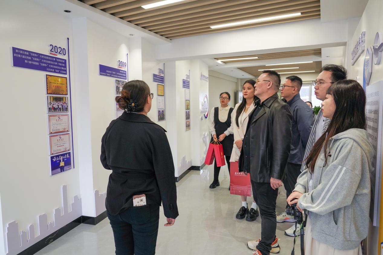 首站,曾龙威处长一行到访昆明理工大学。昆明理工大学给予了热情接待,秦亚琴副院长、刘拥华教授等领导陪同参观大学生创新创业实践基地。随后,双方就人才培养、创新创业教育教学、就业教研教学、实践基地建设以及毕业生就业指导等方面进行座谈交流。秦亚琴副院长表示,希望双方能在人才培养、教育教学、成果转化等方面构建紧密协作的创新模式,进一步深化高校合作、产教融合,以取得更多丰硕的成果。