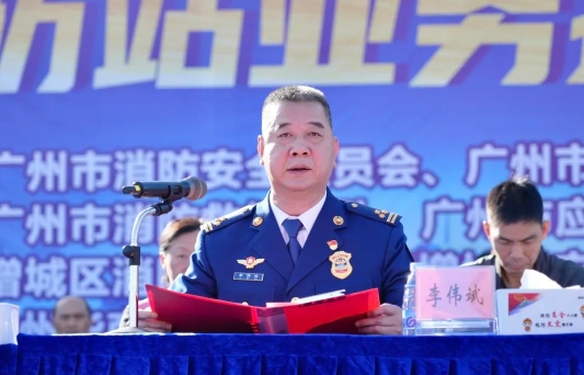 广州市消防安全委员会副主任李伟斌,广州市增城区委副书记、区长林怡辉,广州市应急管理局党委委员、副局长李晓炜,广州市总工会党组成员、副主席尹宏亮,广州市消防救援支队副支队长罗志勇、黄绍伟,广州市增城区常务副区长韩涛,新伟德国际1946副校长吕峻闽等出席本次活动。
