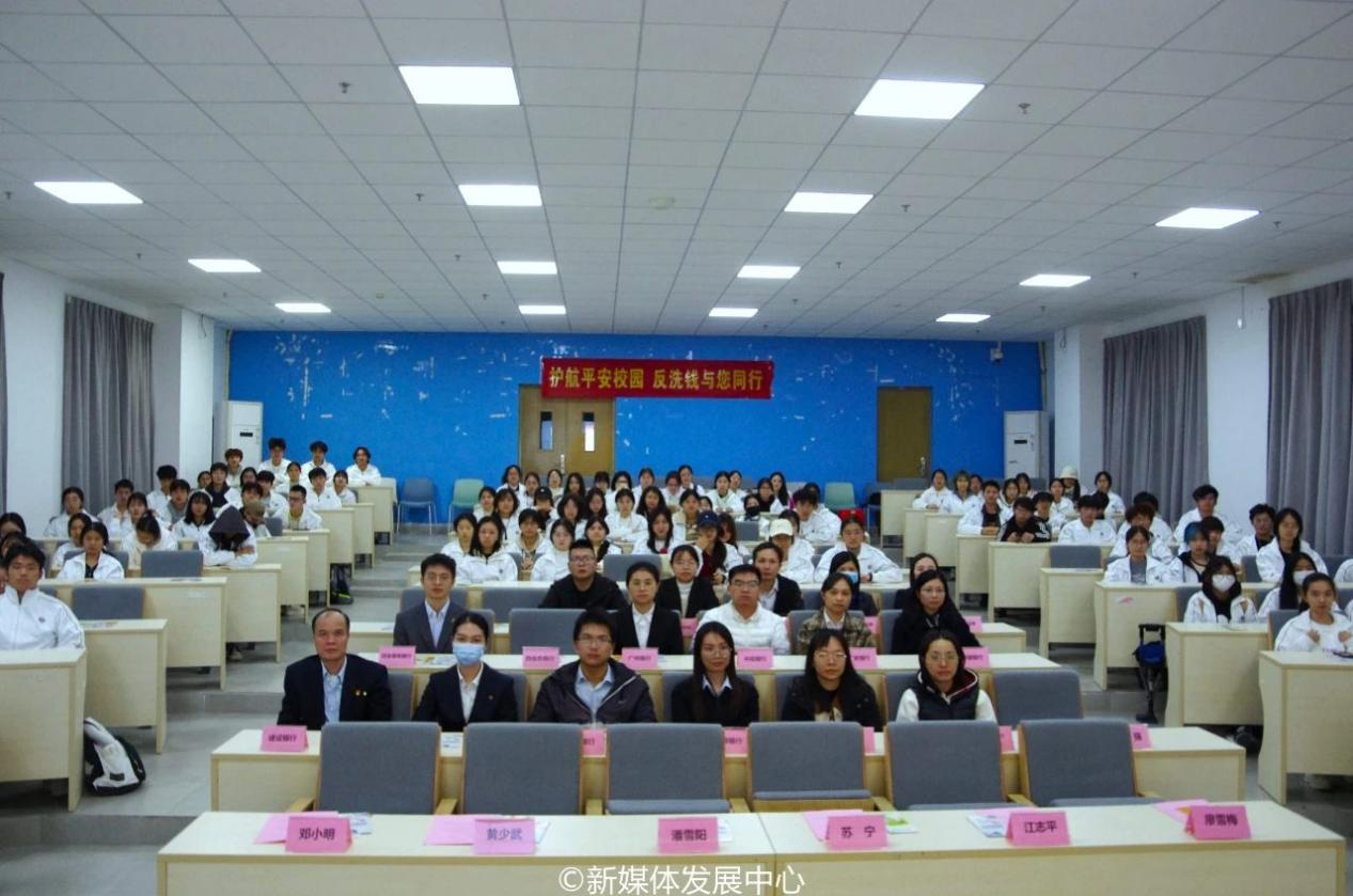 中国人民银行肇庆市分行党委委员、副行长潘雪阳,反洗钱科科长邓北浩,四会营管部主任李伟杰,四会市纪委常委、市监委委员黄少武,四会市公安局党委委员、副局长江志平,四会市人民检察院党组成员、副检察长邓小明,四会市人民法院党组成员、副院长廖雪梅,新伟德国际1946肇庆校区党委书记苏宁,四会农商银行党委副书记陈玉,校团委副书记陈巧巧,肇庆校区各职能部门负责人及近200名学生代表出席本次活动。