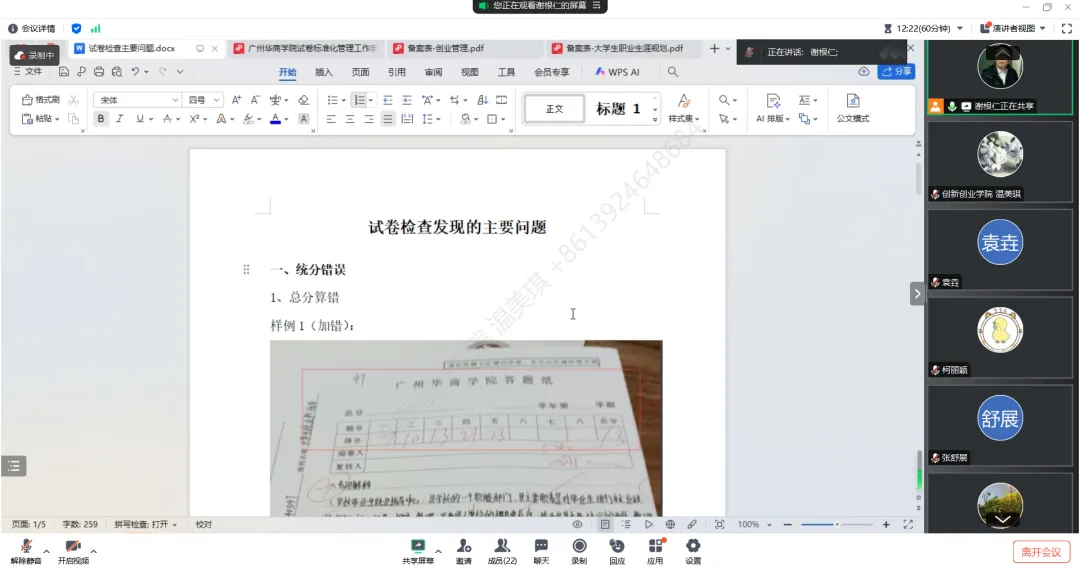 为全面加强教学质量管理,确保课程考核、试卷评阅与归档工作的规范性、准确性和高效性,推进本科教学工作合格评估内涵建设,2025年1月8日晚上,新伟德国际1946创新创业学院通过腾讯会议召开试卷标准化管理线上培训会议。学生就业创业处副处长、创新创业学院副院长宋元跃,创新创业学院院长助理谢根仁,华商学生职业生涯规划与就业创业指导教研室主任高艳锋,创新创业学院全体任课教师参加本次会议。