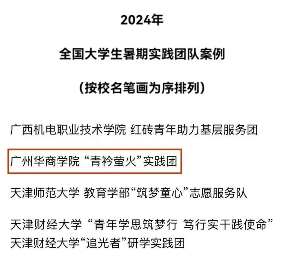 近日,2024年第十届全国大学生暑期实践展示活动案例发布。这是中国青年报社连续第十年举办该活动。经校方推荐、团队自荐、网络展示等环节,第十届全国大学生暑期实践展示活动落下帷幕。其中,我校“青衿萤火”百千万工程突击队凭借优异表现成功入选2024年全国大学生暑期实践团队案例百强。