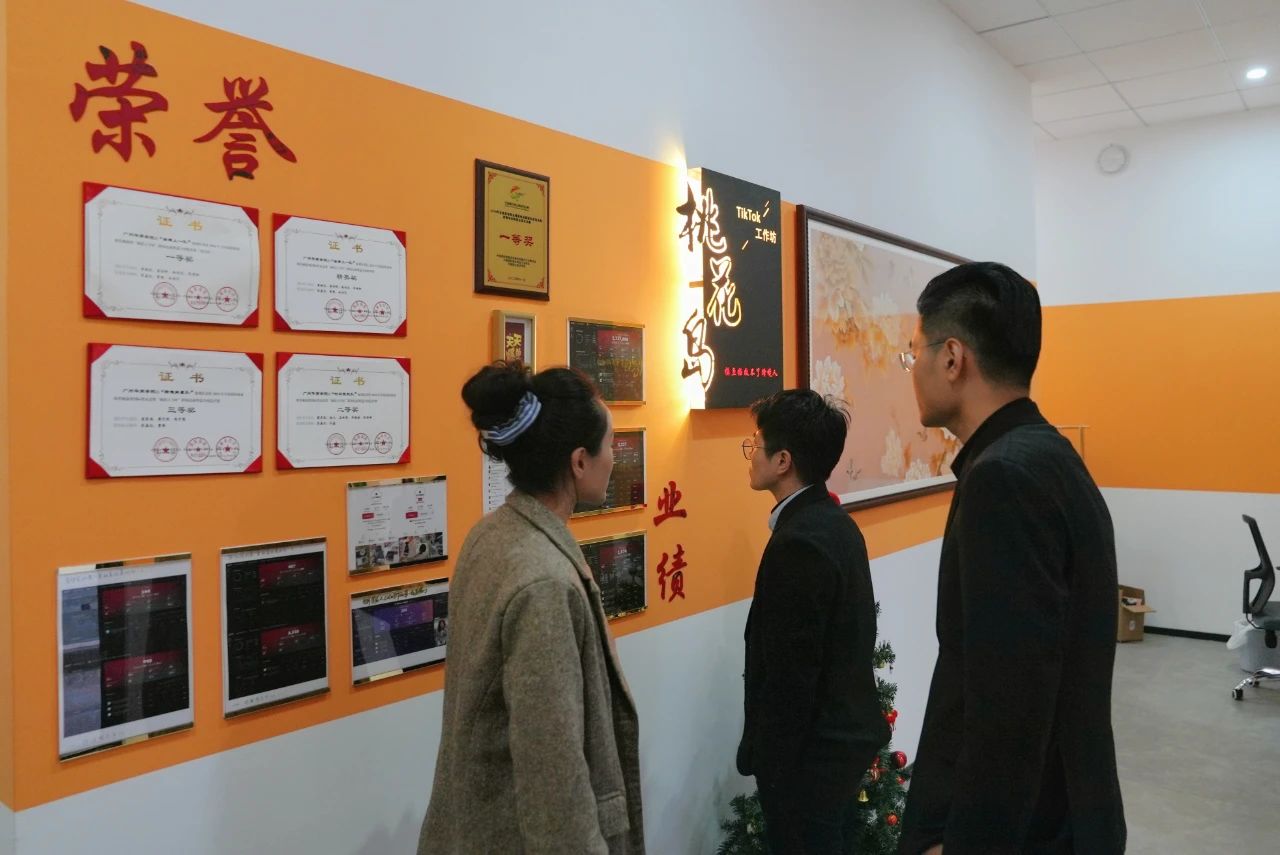 在吕峻闽副校长及相关部门负责人的陪同下,大事件科技集团创始人兼CEO汤宇先生一行参观了动漫游戏产业学院、数字贸易产业学院以及广州桃花岛网络咨询有限公司。通过实地考察,嘉宾们深入了解了新伟德国际1946在新媒体运营、直播运营、跨境电商等领域的前沿教学设施与实践成果,对学校在产教融合领域的积极探索有了更直观的认识。
