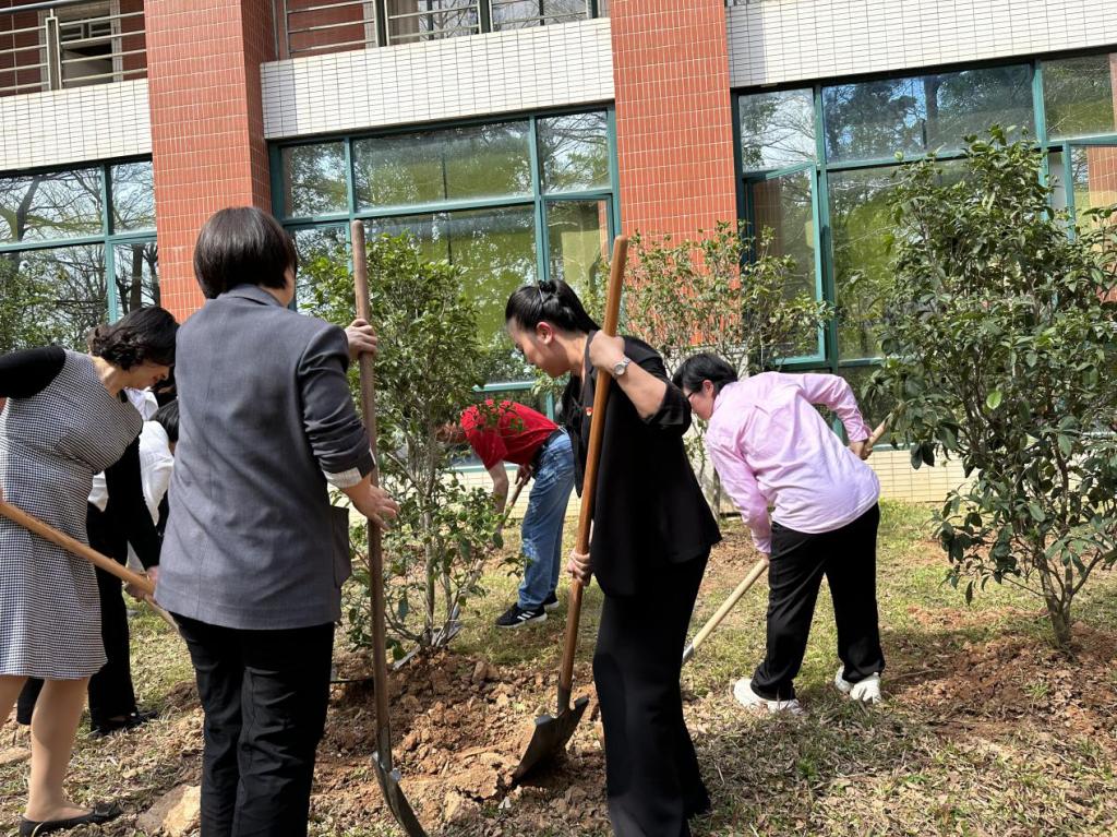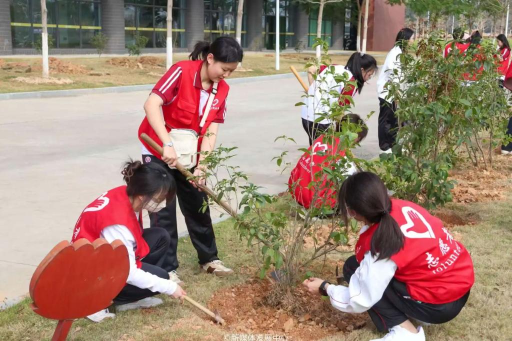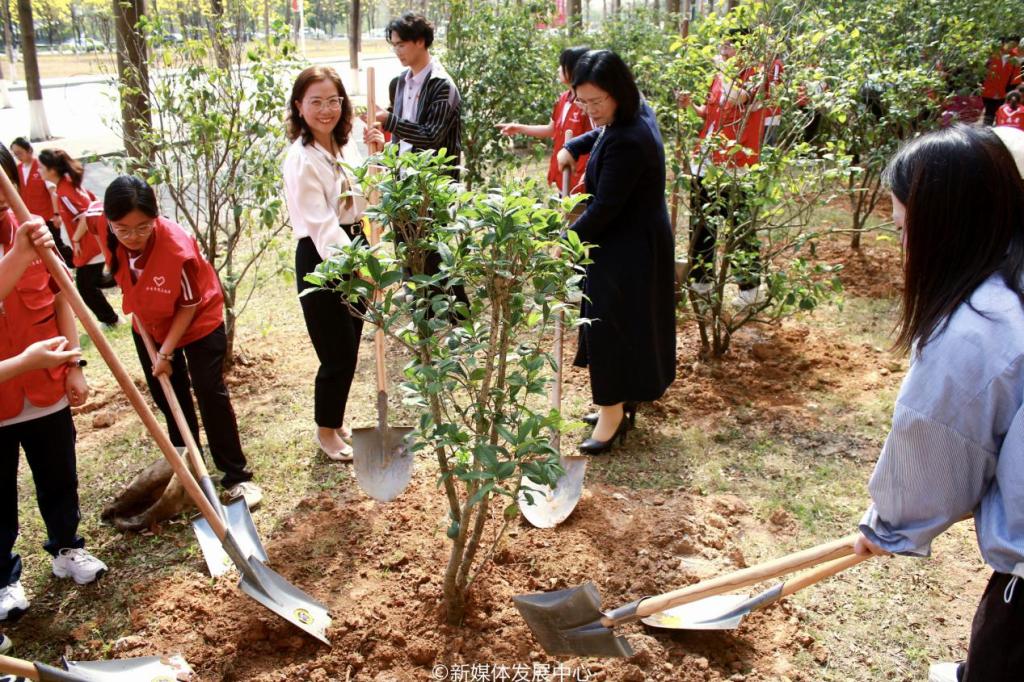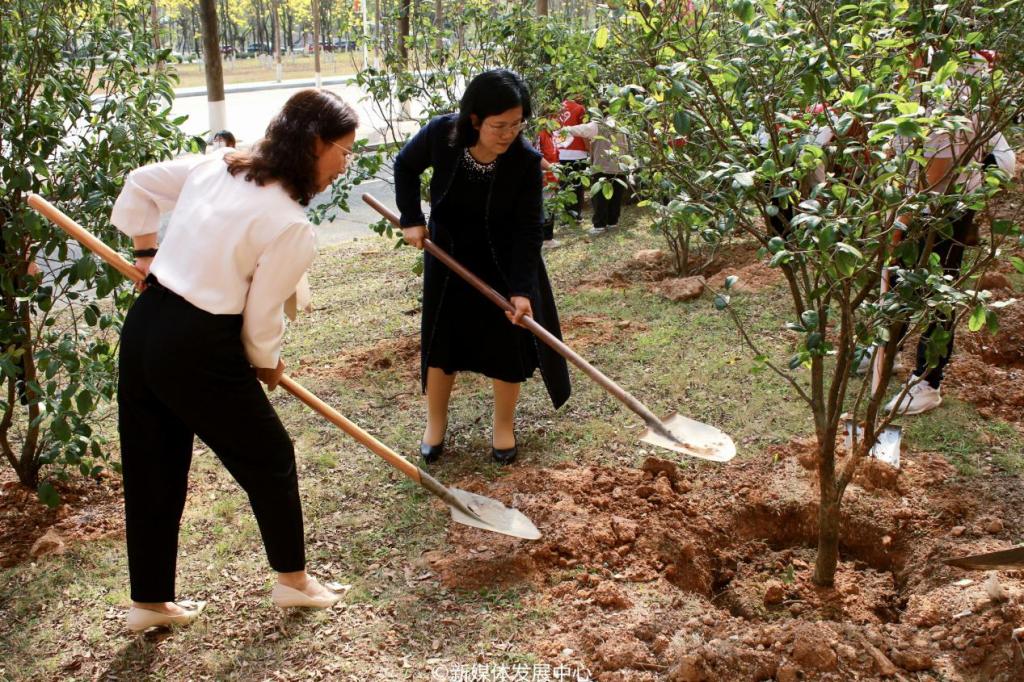 启动仪式后,相关单位、部门领导干部及三院校师生等来到厚德楼参加植树护绿活动。
