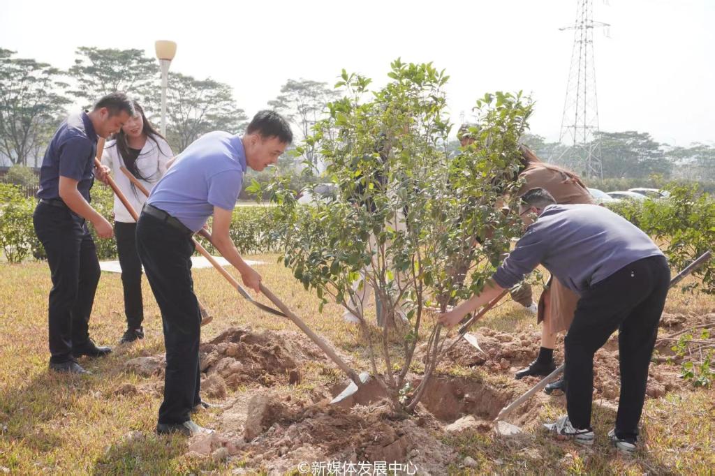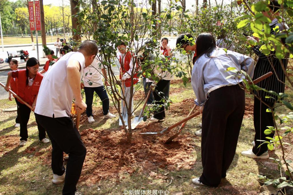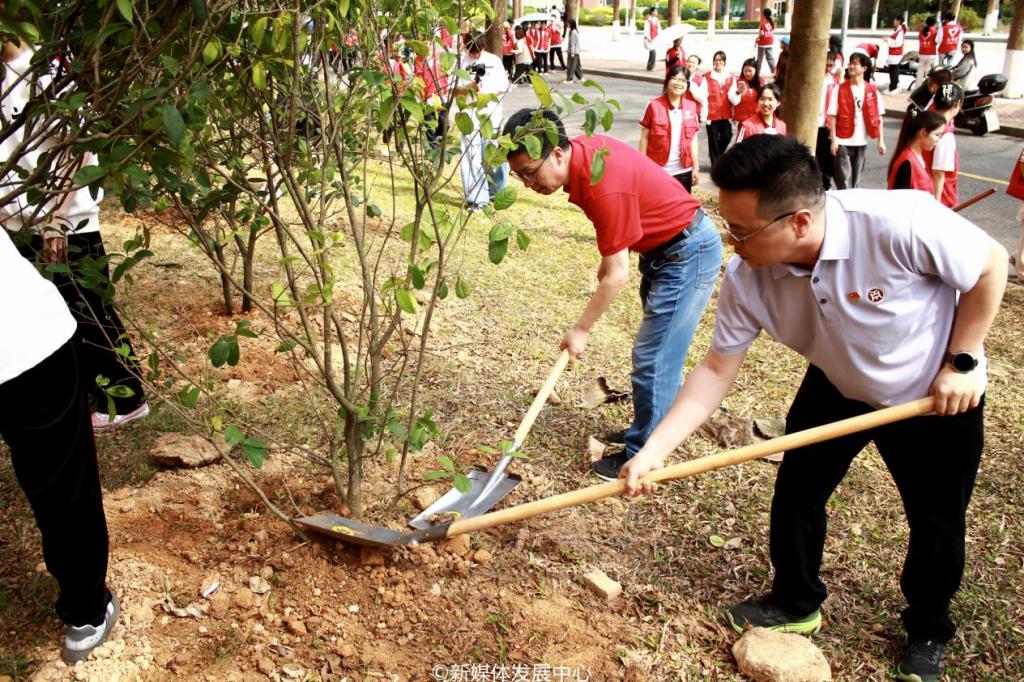 为引领华商青年在实践中践行绿色发展理念,助力绿美广东生态建设,3月11日-12日,新伟德国际19462025年“绿美广东 青年先行”植树护绿活动在双校区开展。学校党委书记陈玉欢,校长助理黄伟新、张军,党委委员、党委办公室主任吕书勉,肇庆校区党委书记苏宁,国际学院院长回雁雁,创意与设计学院院长杨磊,管理学院副院长袁仕海,体育学院党总支副书记莫军,肇庆校区后勤保卫办公室主任徐强,党群部门负责人、校院两级团学骨干、教师代表及学生志愿者近400人参加本次活动。