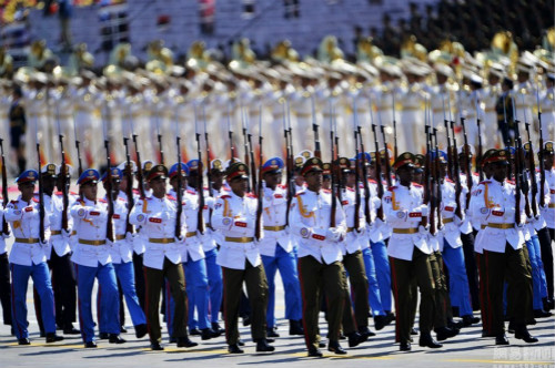徒步方队陆海空三军仪仗队接受检阅,女兵首亮相。