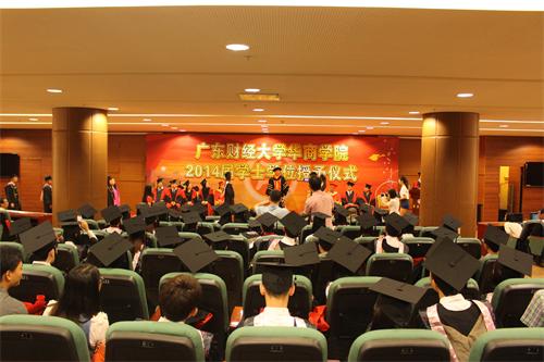 随后,苏宁书记宣读《广东财经大学华商学院关于表彰2014届优秀毕业生的决定》,各位毕业生依次上台,从领导手中获得证书。