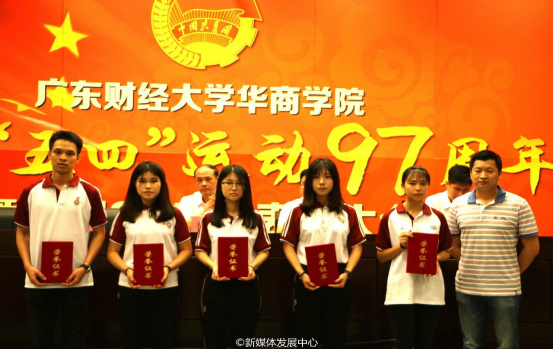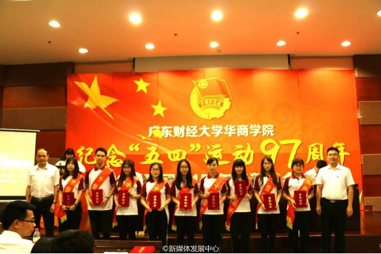 5月12日18时,广东财经大学华商学院纪念“五四”运动97周年暨建团94周年表彰大会在国际会议中心四楼报告厅隆重召开。出席本次大会的领导和嘉宾有学院党委书记苏宁,团委书记杨宪、副书记刘苗,团委常委吴泽佳、黄秋铭,以及学院团委委员、各学生组织(社团)的指导老师、团员青年代表等。大会由学院团委副书记刘苗主持。