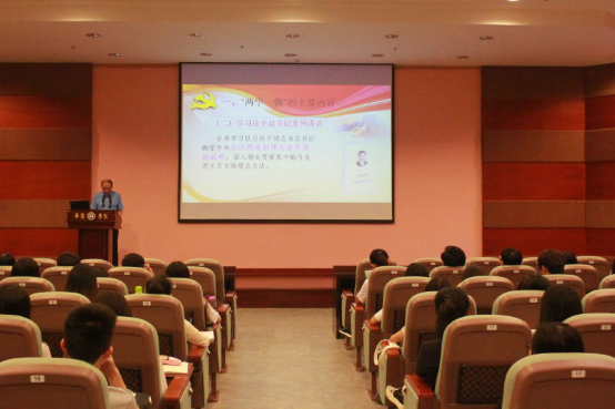 苏宁作辅导报告。他从“两学一做”学习教育的主要内容、意义、总体要求以及如何做一名合格的共产党员四个方面,阐释了作为一名大学生党员,应如何学习党章党规,争做合格党员。