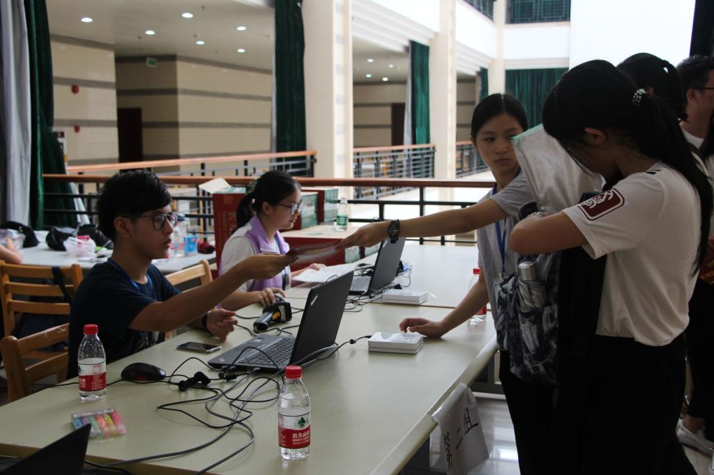 广州的夏天是炎热的,为此每个迎新摊位都准备了矿泉水,方便新生及家长。面对新生们提出的诸多问题,工作人员不厌其烦地解释,始终保持微笑,让新生们倍感亲切。为了应对新生人数众多这一问题,迎新工作各流程分工明确,细致周到。现场的一台台照相机拍摄下新生们融入华商学院的第一张照片。每个迎新摊位专门设立相关的讲解人员,为新生及家长们答疑解惑。贴心的工作人员还在发给每位新生的资料袋里放了一份印有班导师联系方式的传单,便于学生和班导师联系。这些点滴让大一新生们在入学的第一天就深深感受到华商学院的温暖所在。