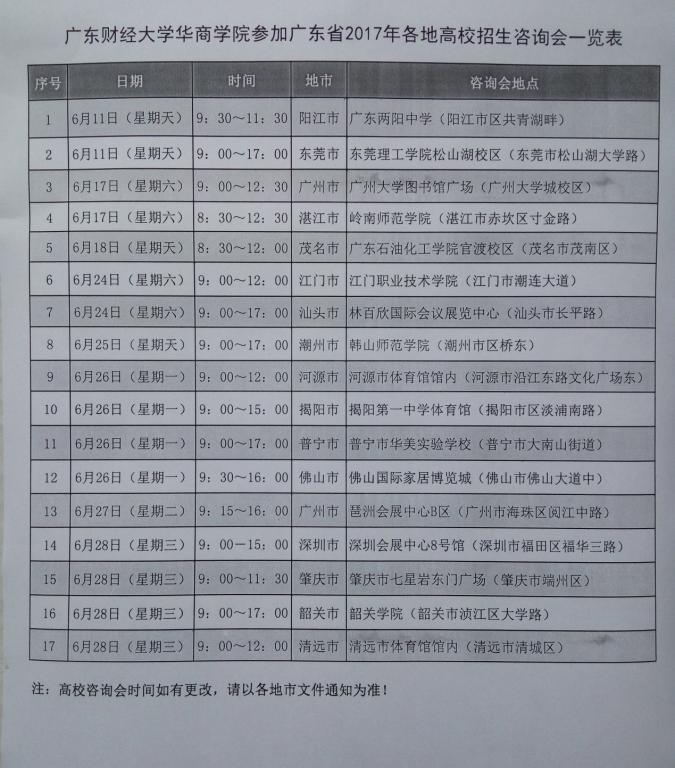 广东财经大学华商学院2017年校园开放日暨各地市高考现场咨询会预告