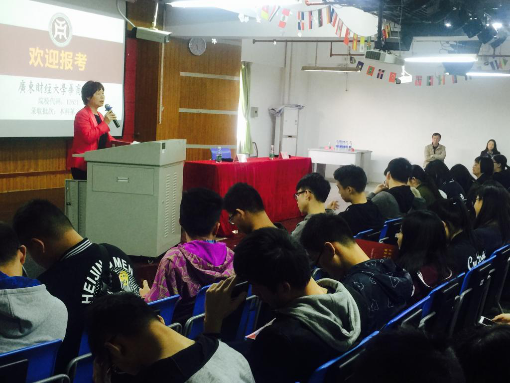 ▲杨丽娟副院长向港澳学生和家长介绍华商学院