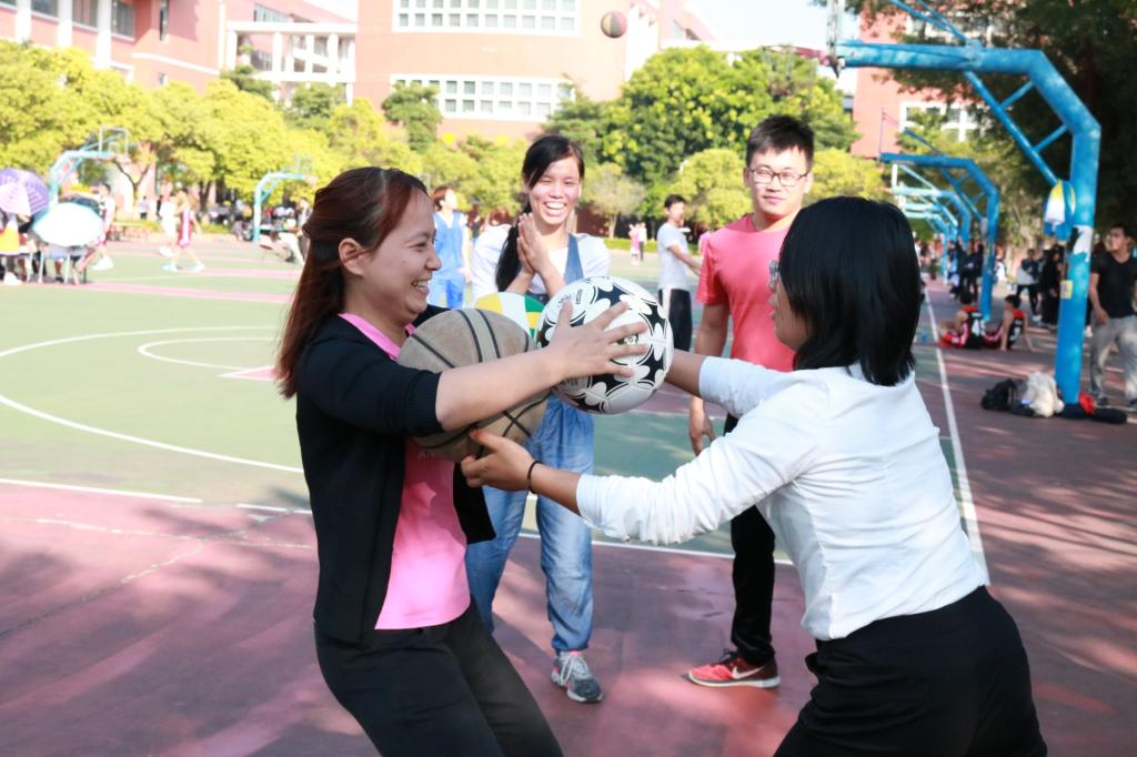 在投篮接力的环节中,男教工充当了主力军,接二连三的得分令赛场迅速升温,而女教工同样积极配合,努力追赶,巾帼不让须眉。