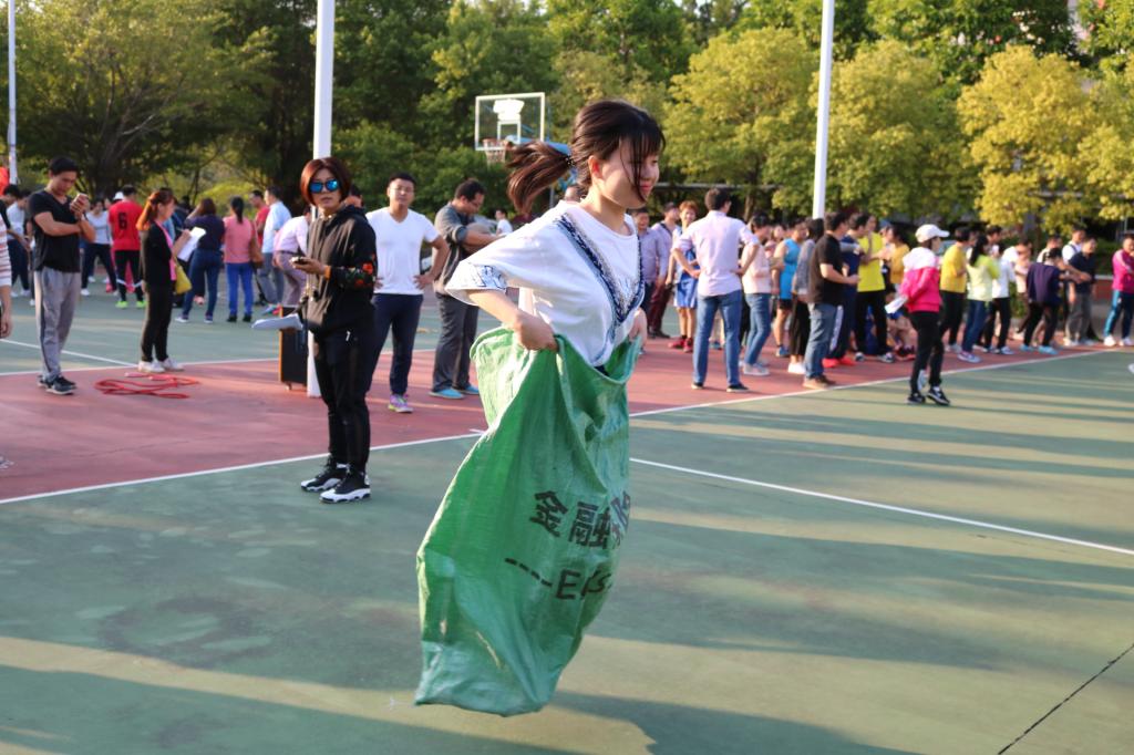 结束了体力之战投篮项目,就到了智慧与力量并存的袋鼠接力跳和趣味组合活动。赛场上教工们在接连受挫后总结经验,最终配合完美完成任务,而在场下的老师和同学们则为他们欢呼喝彩,其乐融融。