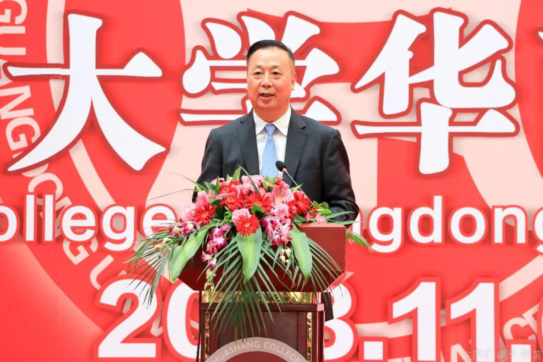 陈新滋校长在致辞谈到,华商学院在廖榕就董事长的领导下,创造了一个很有发展前途的教育平台。孟子说:君子有三乐。父母俱存、兄弟无敌,一乐也;仰不愧于天、俯不怍于人,二乐也;得天下英才而教育之,三乐也。教书育人是非常快乐的一件事,也是特别荣幸的一件事,在教授年轻人的同时,亦能从年轻人身上学到很多东西。陈校长指出,华商学院有自己的办学特色,培养的是实实在在做好每一份岗位工作的学生,华商学子毕业之后都能成为各行各业独当一面的人才。他认为,年轻人拥有更多新的想法,他希望每周三定期能与师生共进午餐,多听听师生们的意见,共同讨论华商学院的发展,多接受新的理念。希望今后在华商学院,有更多的机会向老师们学习,向学生学习。