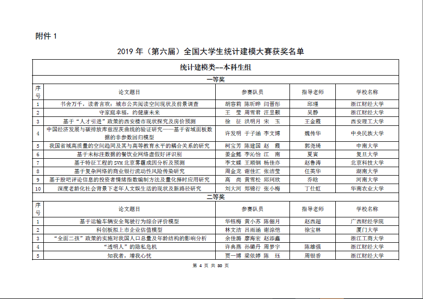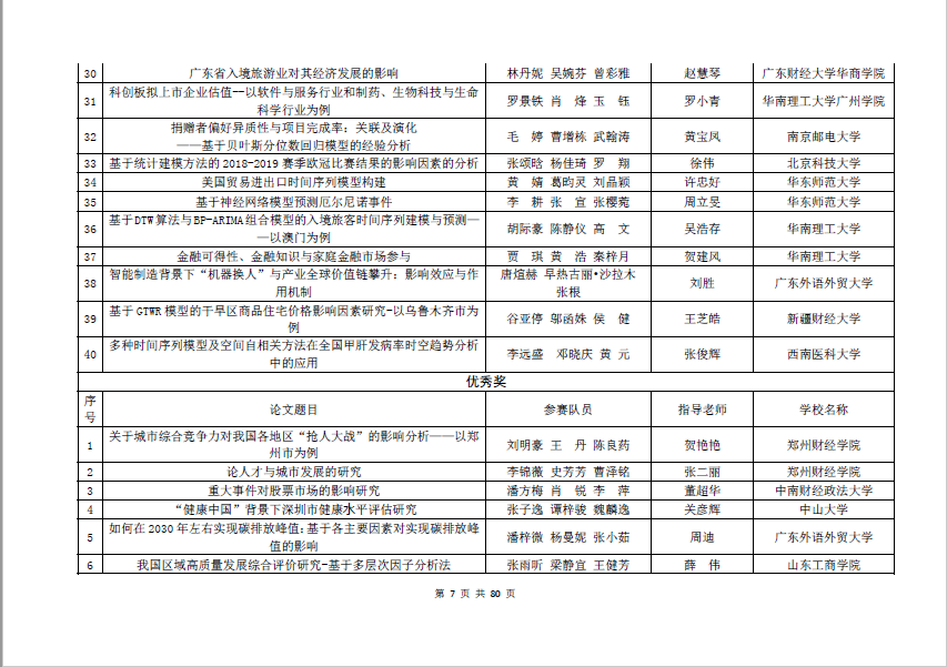 附全国统计建模大赛统计建模类--本科生组获奖名单