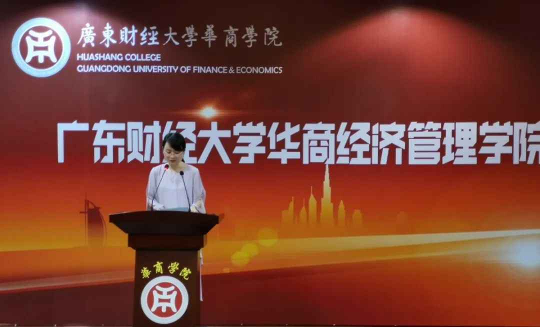 校友汪杰萍女士对广东财经大学华商经济管理学院校友会章程(草案)进行宣读。