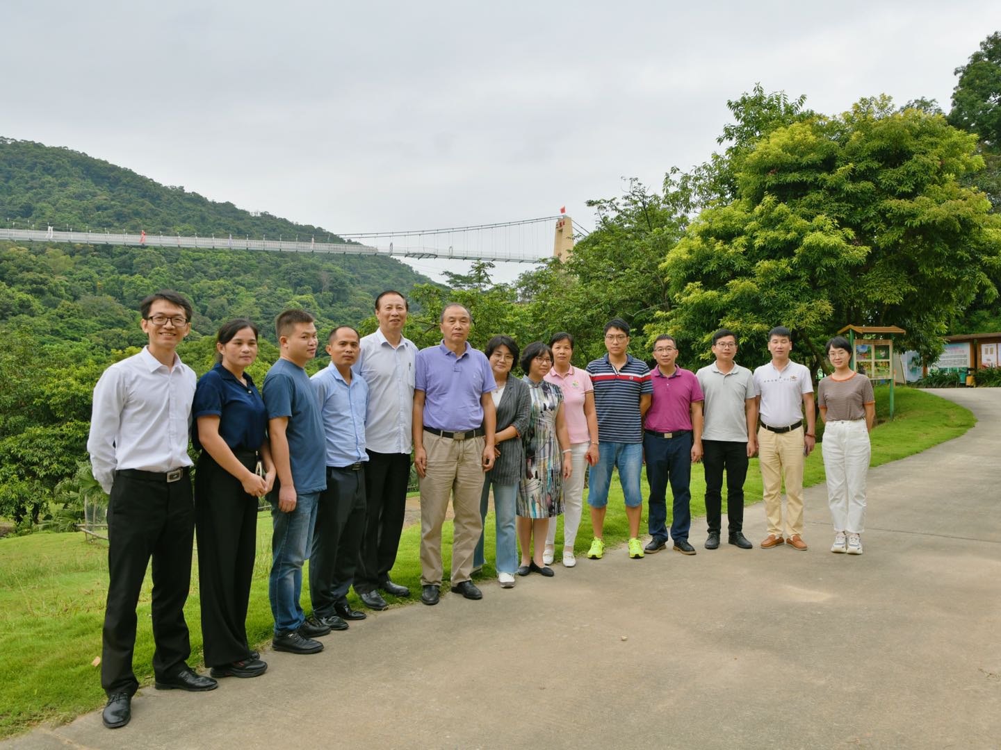 随后,人文学部一行参观、考察了位于邓山村的二龙山花园。该花园自然条件优越,森林生态环境良好,山间灌木丛生,古树成荫,山间流水潺潺流淌,原始气息浓厚,拥有古梯田、瀑布、山涧、古树林等自然风光,是华南地区重要的旅游生态福地。
