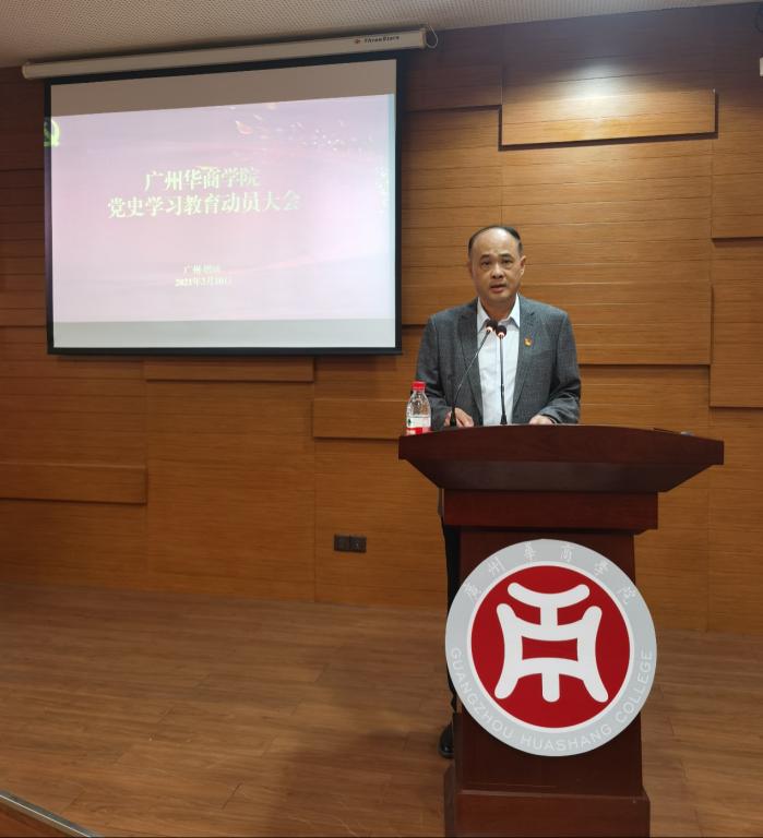 郭银华同志作总结讲话,强调开展党史学习教育,1.增强政治责任感,把党史教育作为我校当前以及今后的重要政治任务;2.坚持不懈用党的创新理论最新成果武装头脑,提高政治判断力,政治领悟力,政治执行力;3.坚决把习近平总书记重要指示批示和党中央决策部署体现到学校发展和党的建设各项工作中;4.凝聚推动华商学院高质量发展的强大动力,做到办实事、解难题,协调解决师生现实问题。