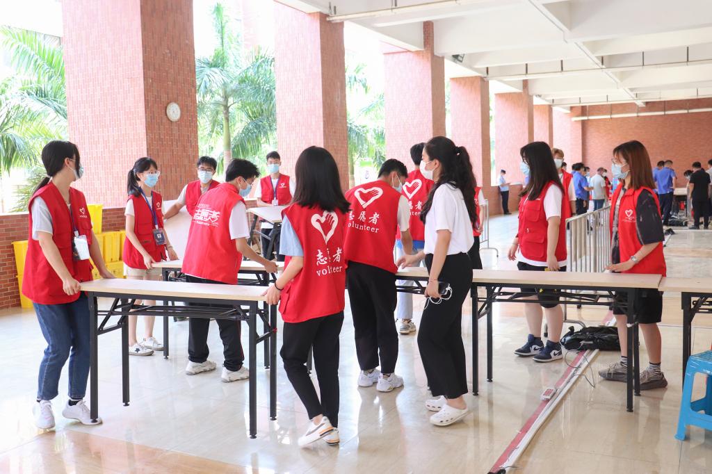 6月5日下午,根据《广州市增城区新型冠状病毒肺炎疫情防控工作领导小组关于开展全区全员核酸检测工作的通告》(第4号),在校党委的领导下,校团委迅速部署志愿者招募工作。仅仅10分钟,600多名志愿者集结完毕,经过连续12个小时的奋战,顺利完成检测、信息采集、路线引导和维持秩序等任务,截至6月6日凌晨2:00,我校完成核酸检测30000余人。