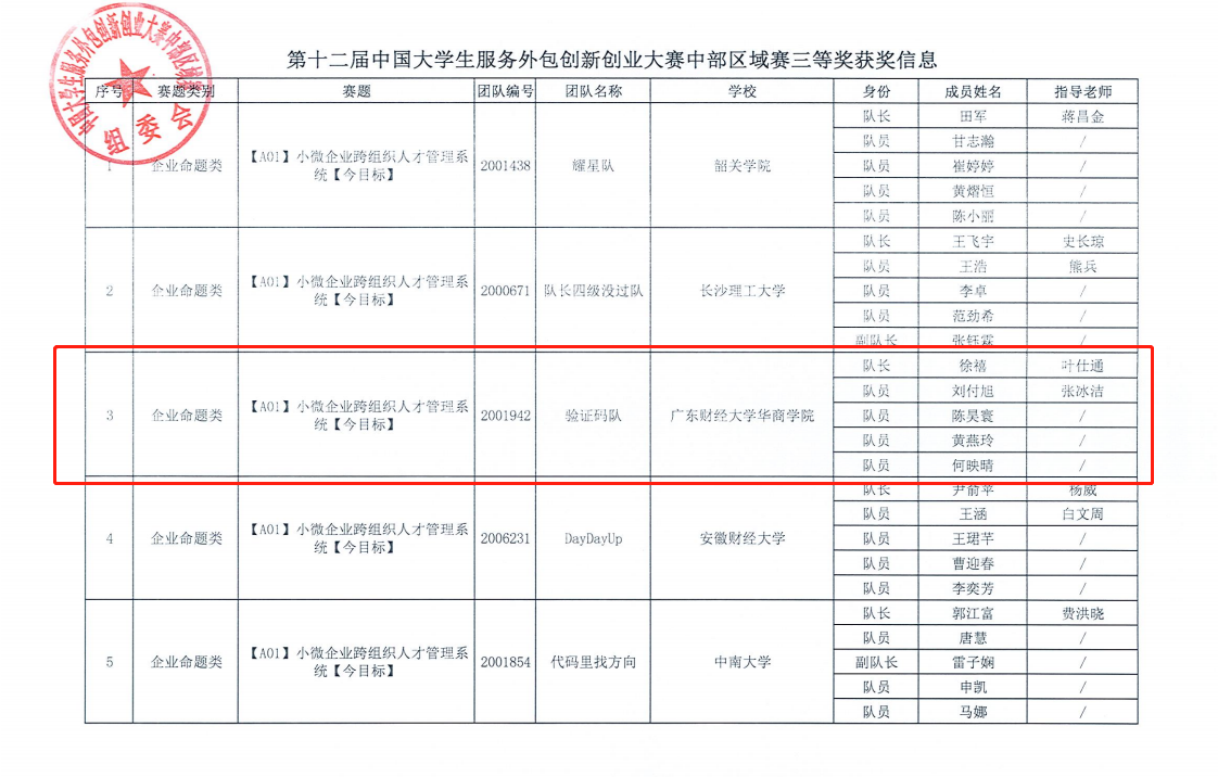 近日,第十二届中国大学生服务外包创新创业大赛组委会公布中部区域赛获奖成绩。本届大赛共吸引了来自全国663所院校的6750支团队报名,在我校师生的共同努力下,“验证码”团队获得中部区域赛三等奖。