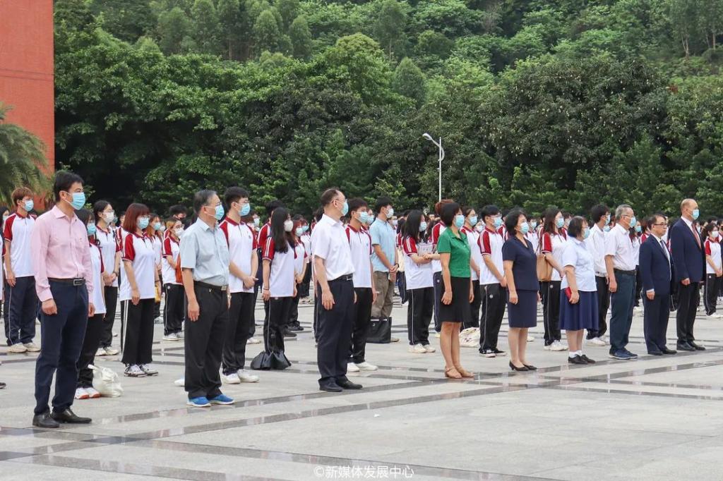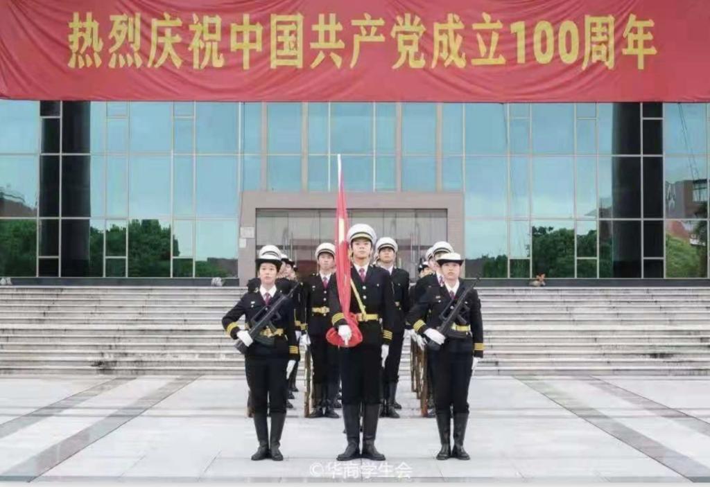 百年征程波澜壮阔,百年初心历久弥坚。2021年7月1日上午7时,为热烈庆祝中国共产党成立100周年,将党史学习教育推向新高潮,培育华商人不忘初心、牢记使命的信念,我校隆重举行升旗仪式。郭银华执行校长、校党委苏宁书记、支戈壁副校长、校党委副书记王锦秀副校长、张捷副校长、陈美华副校长、程辛荣副校长、韩兆洲副校长、王力东副校长、学工部许娜部长、校团委刘苗书记、校团委陈刚副书记、校团委老师、各院系团总支书记、以及校级学生组织代表、各二级院系学生代表近700人统一身着正装和校服,党员同志佩戴党员徽章、共青团员佩戴团徽,精神饱满,情绪高昂,参与此次升旗仪式,庄严献礼党的百年华诞。