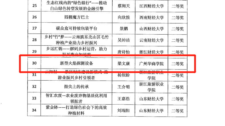▲华商学院获奖名单